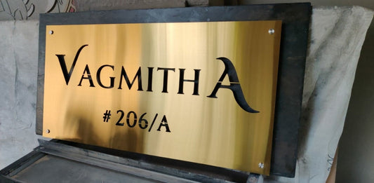 We work with Stainless Steel, PVD-Coated Sheets, Brass, Copper, Slate, Sandstone, Ceramic, Fired Glass, Corten Steel, Wood, Granite, Marble, and other exquisite natural stones. Every nameplate is precision-crafted, blending timeless design with modern sophistication.